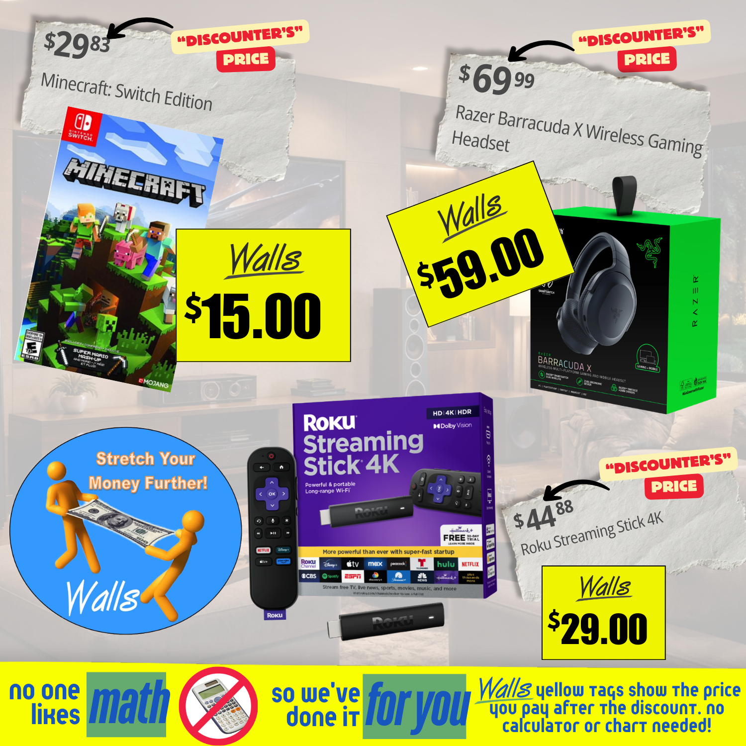 Trying to make your money do backflips? Walls has you covered. Our Yellow Tag Pricing is basically your wallet’s new best friend — the kind that hypes you up AND spots you 33% (or more!) off the leading discounter’s prices.