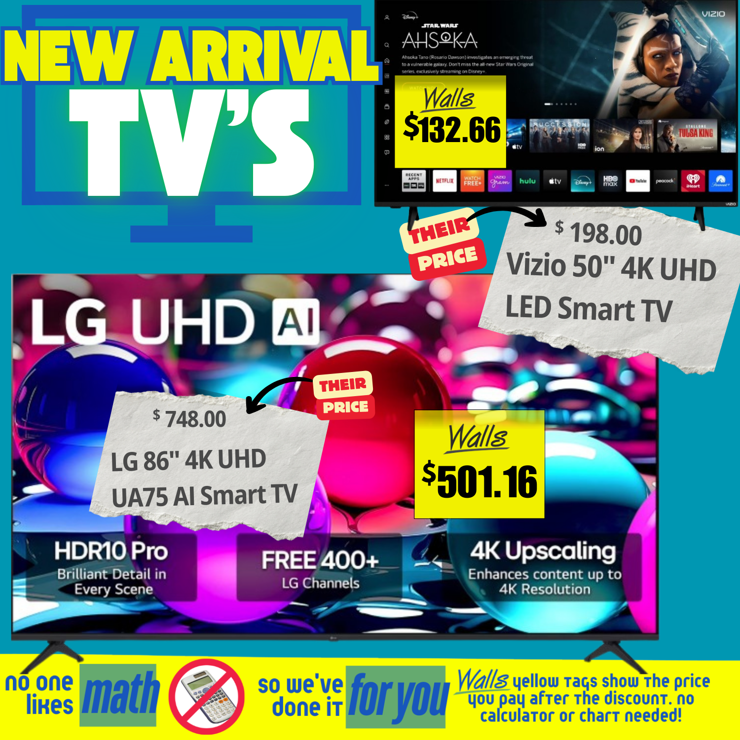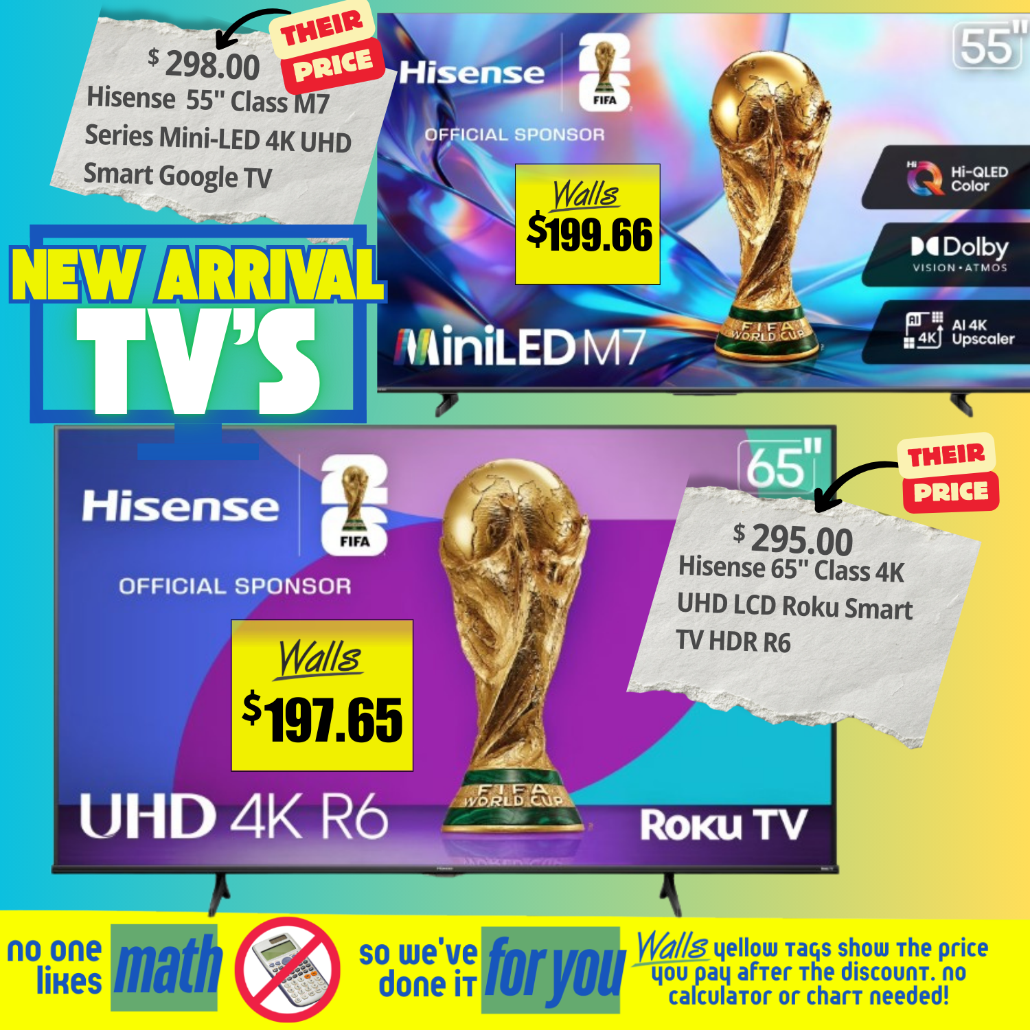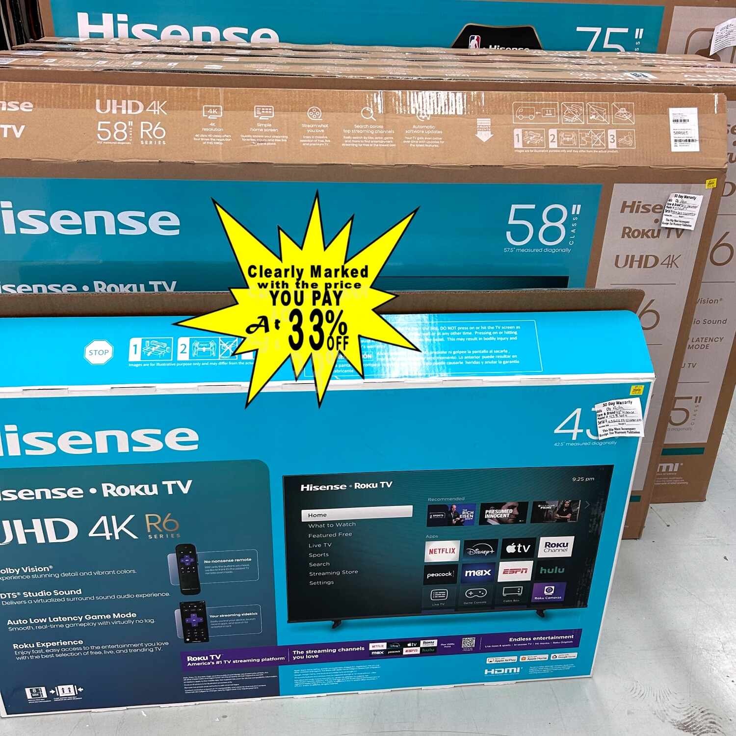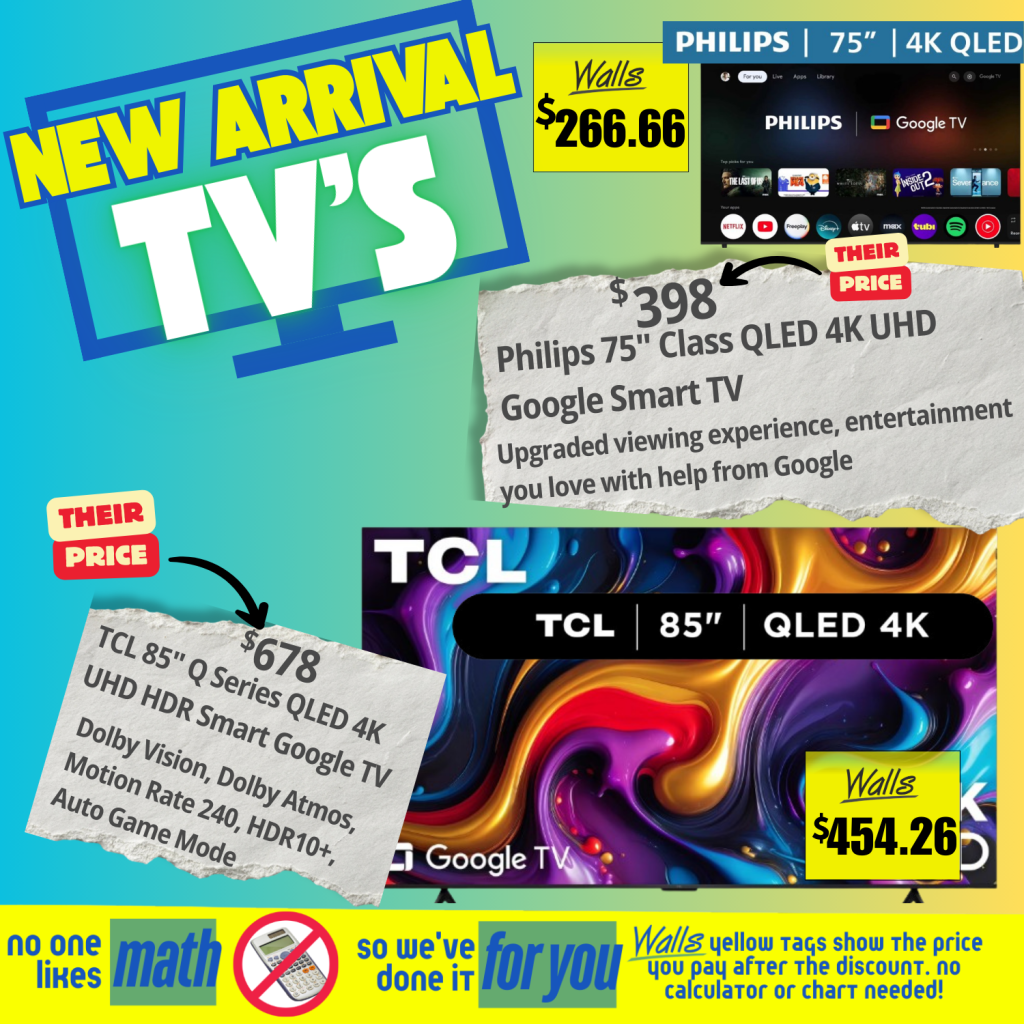β€’ LED Smart TVs, Roku Smart TVs, and feature-packed models ready for movie nights, game days, and binge-watch marathons