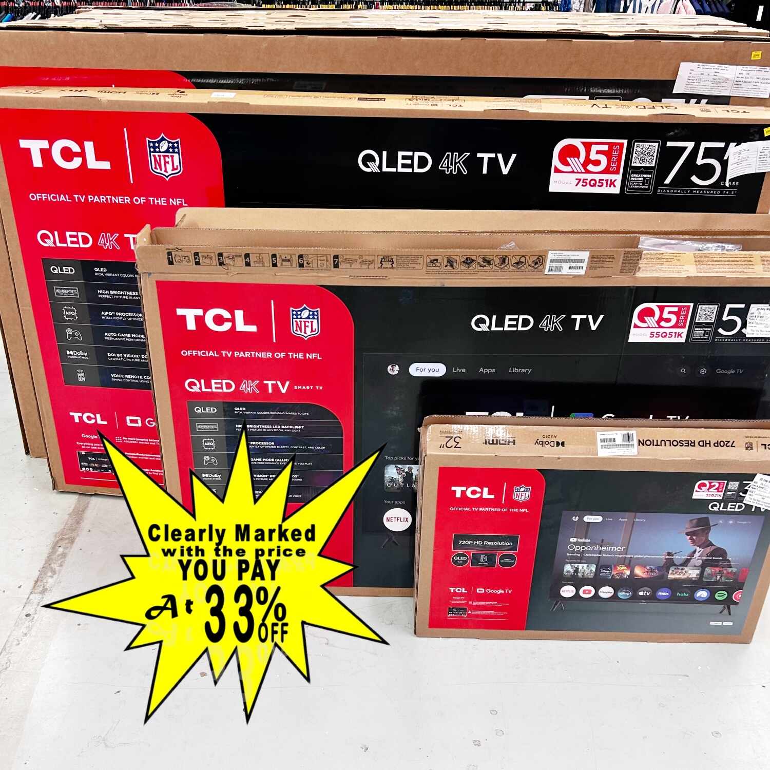 Bring the cinema home without selling a kidney. Explore a wall of dazzling screens from trusted brands like LG, TCL, Vizio, Hisense and more!