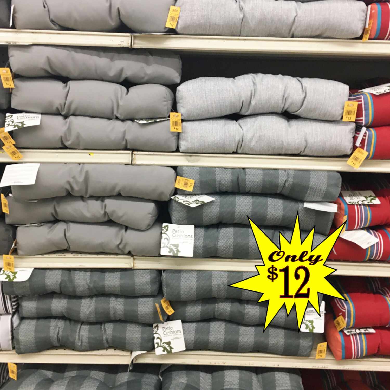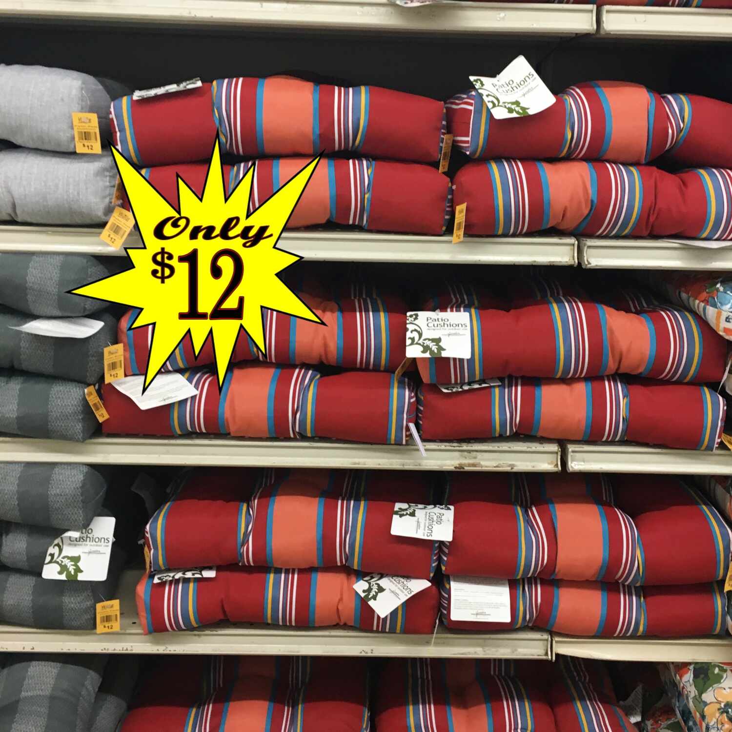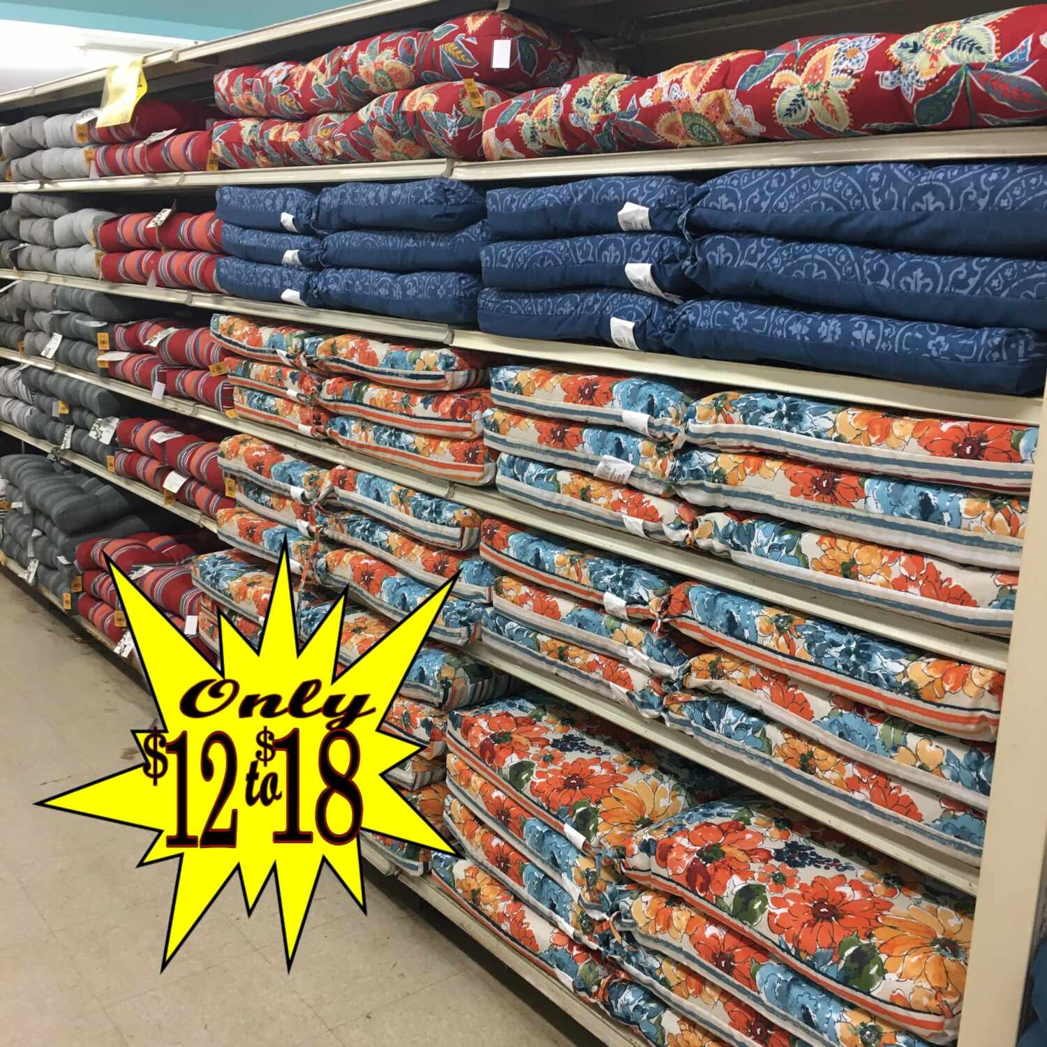 Patio Cushions $12 to $18!
