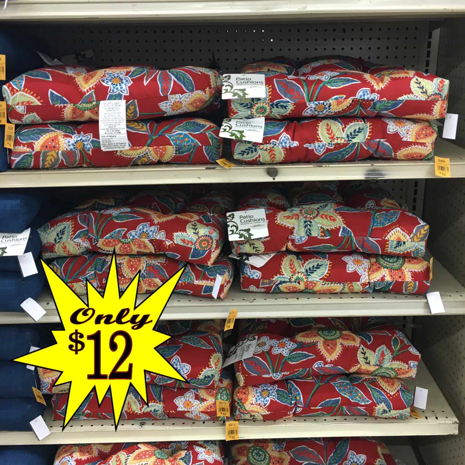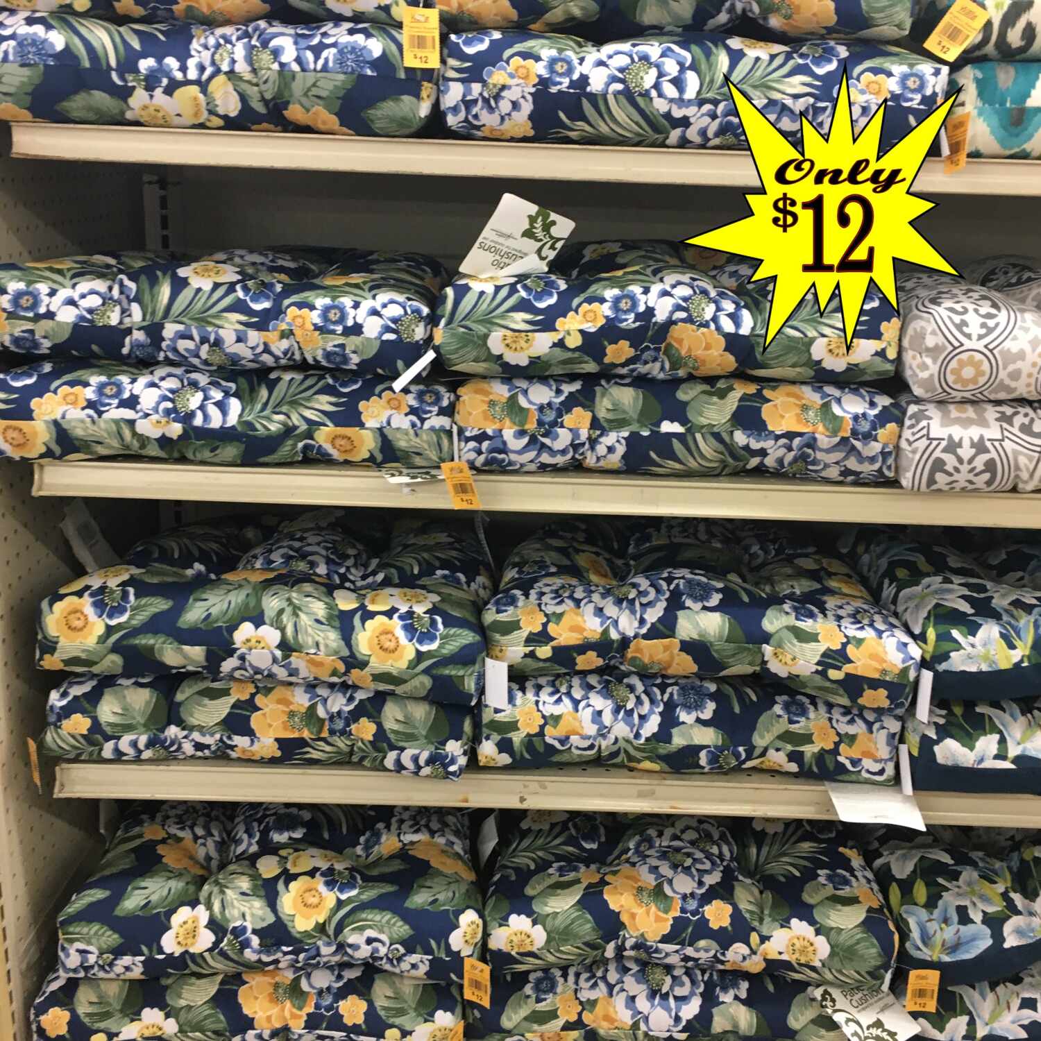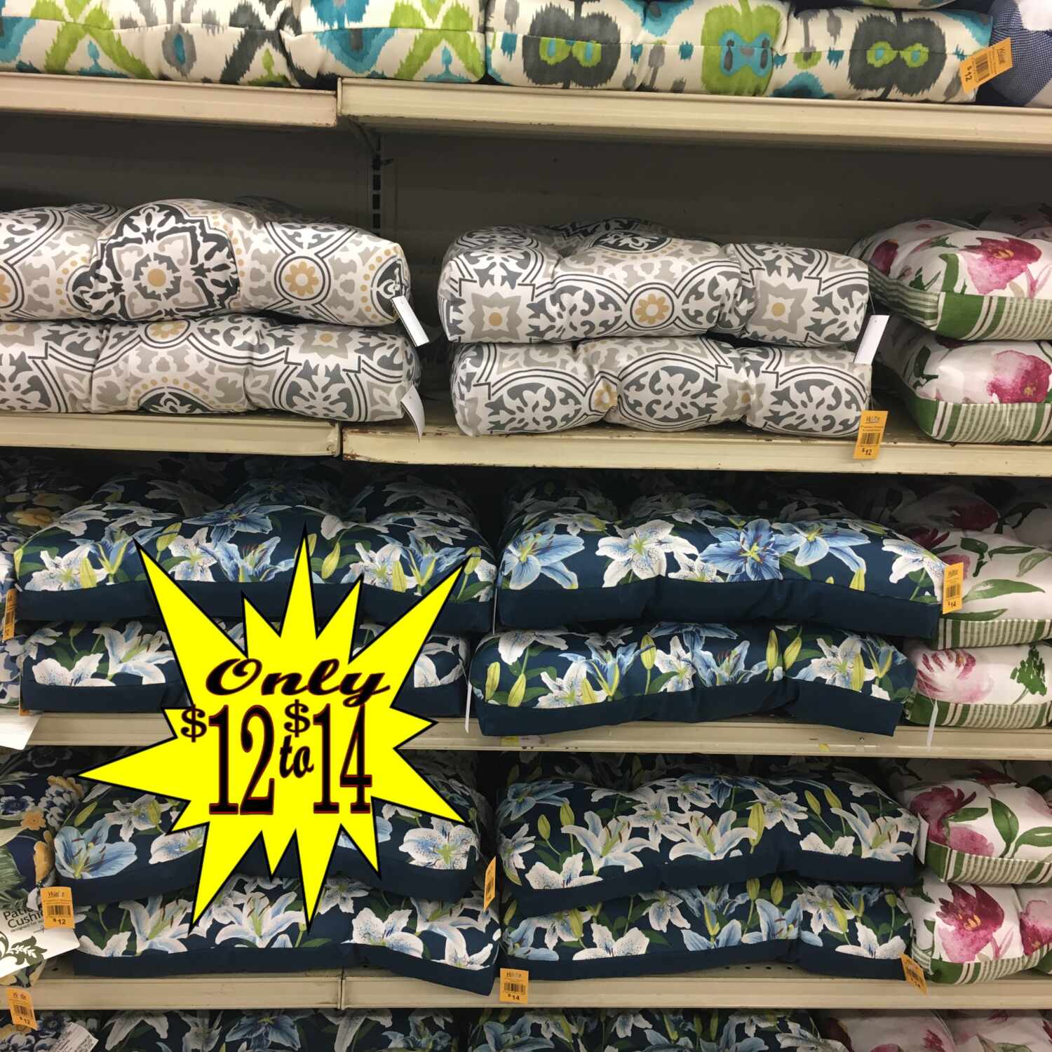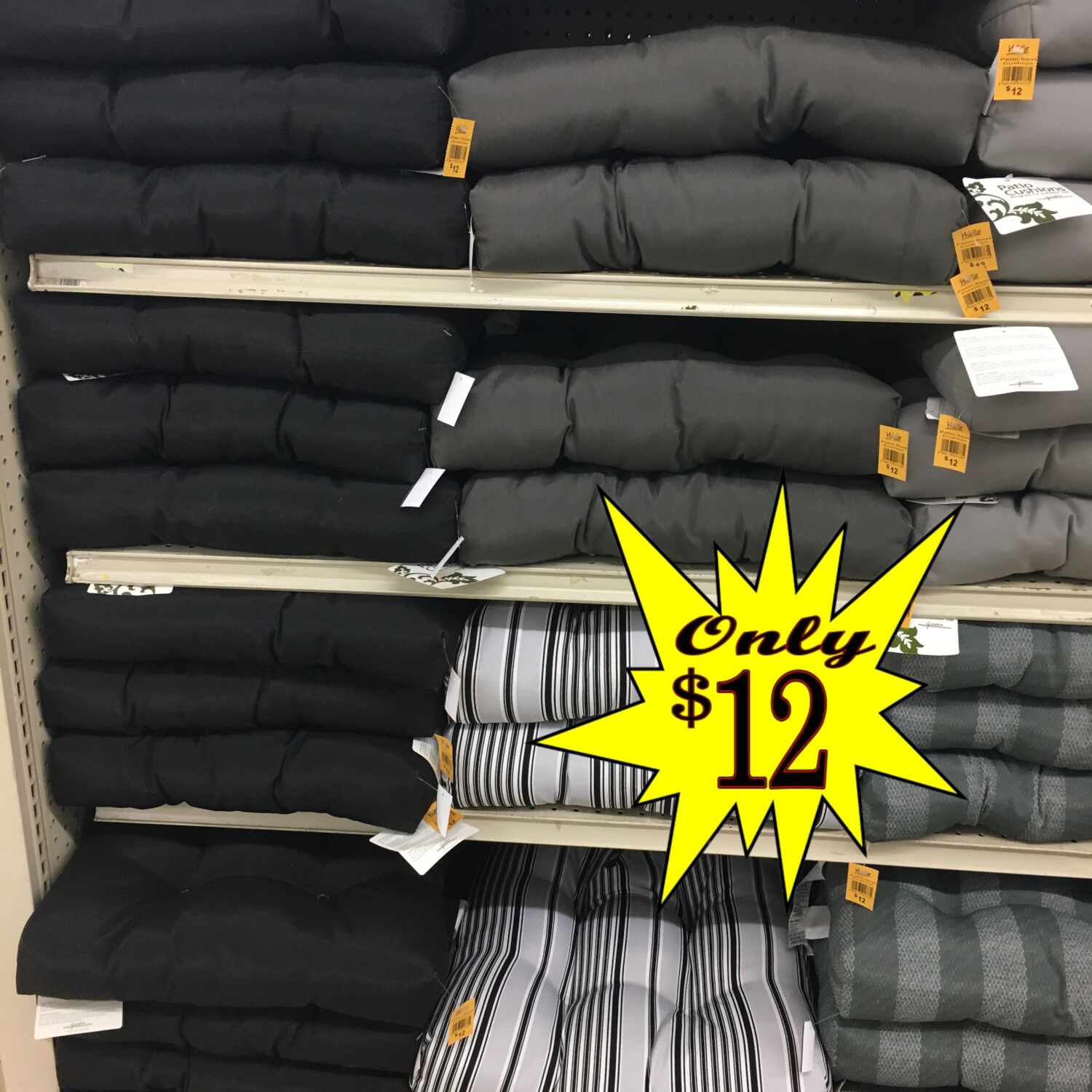 Patio Cushions $12 to $18!