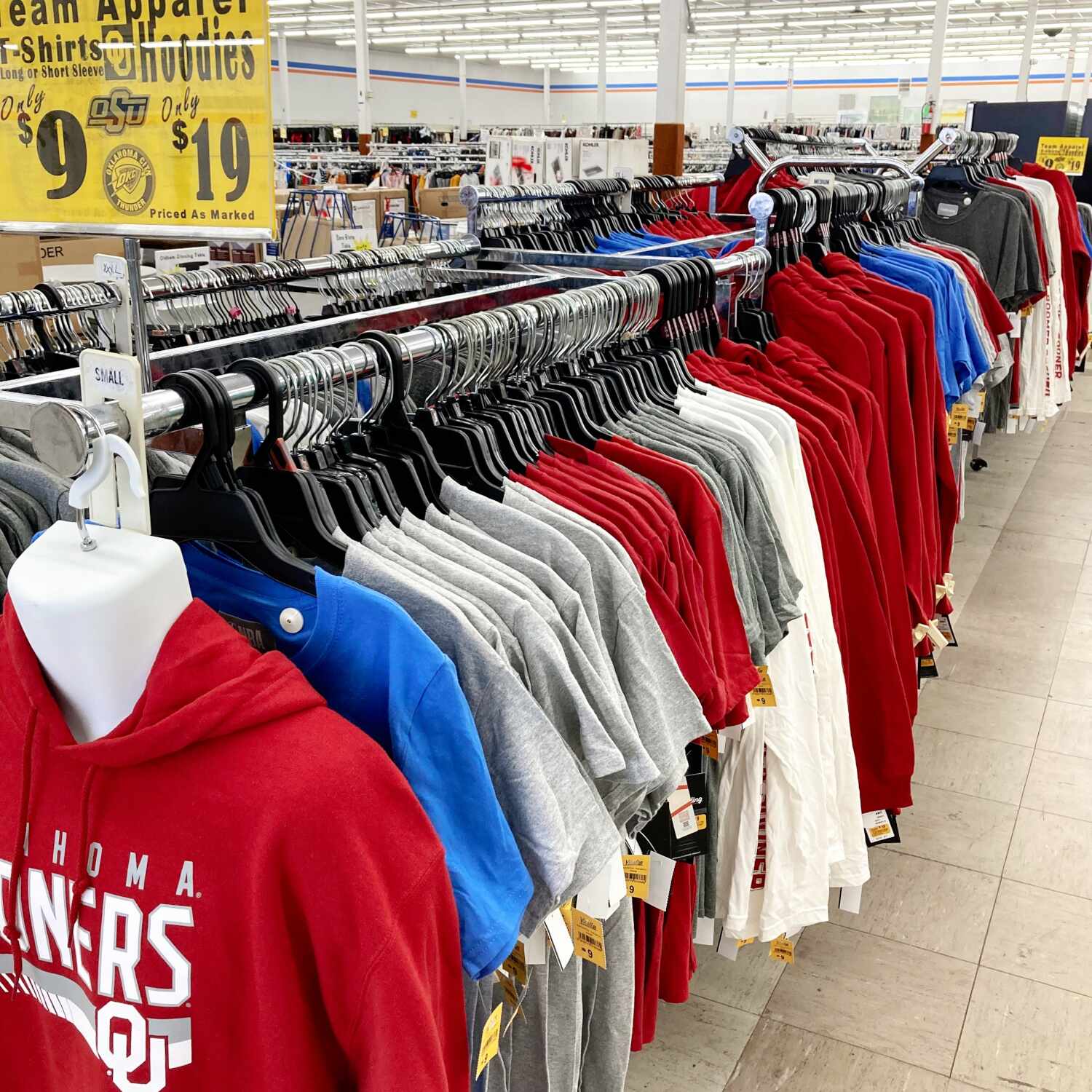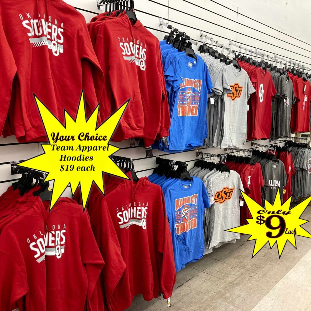 We recently added new selection of styles of Team Apparel T-Shirts alongside of OU Hoodies at your Elk City Walls! Shop Today, Friday, September 12th, support your favorite team and save! Teams available OU, OSU, OKC Thunder, Women’s Kansas City Chiefs T-Shirts are all represented in these quality T-Shirts & Hoodies! All T-shirts Only $9 and Hoodies Only $19! Sizes range from SM to 3XL. Open Monday thru Saturday, 10:00 AM until 7:00 PM.