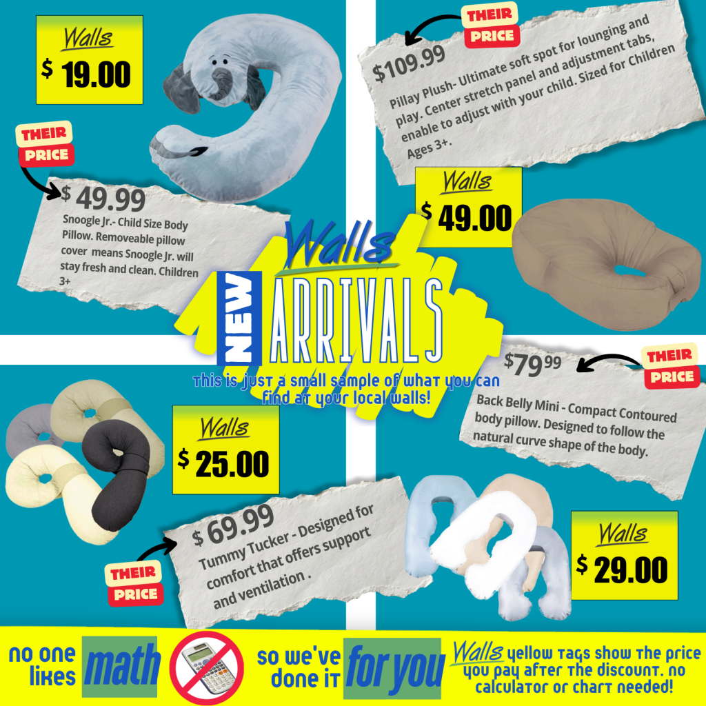 • Tummy Tucker Pillow with adjustable band for ventilation and customized support – Retails up to $69.99, Walls price $25