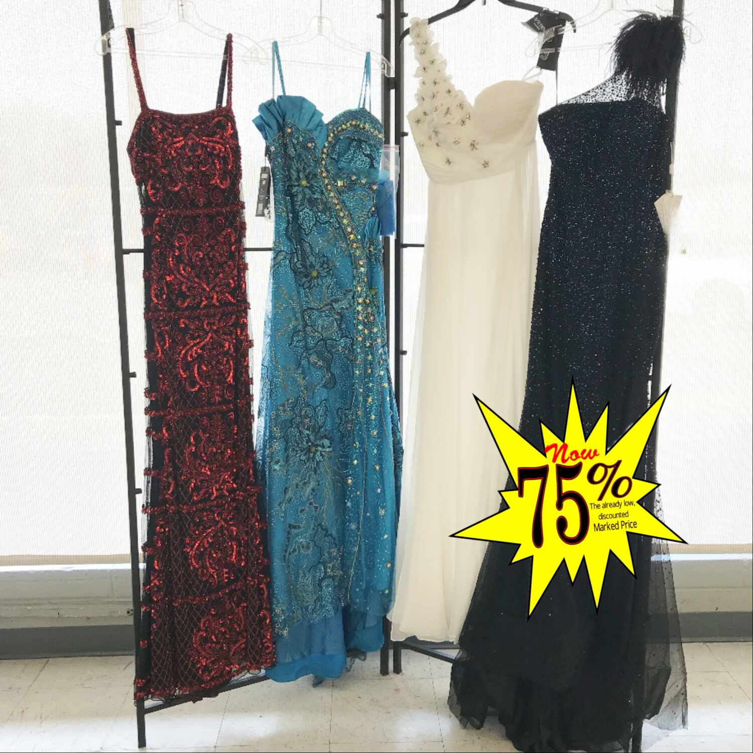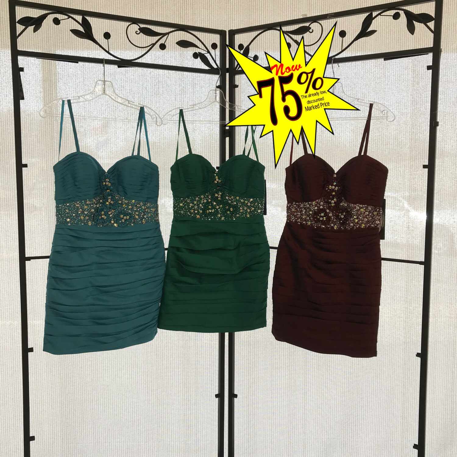 Recently Reduced to 75% OFF the already deeply discounted prices on a stunning selection of Ladies’ Dresses — perfect for your next special occasion!