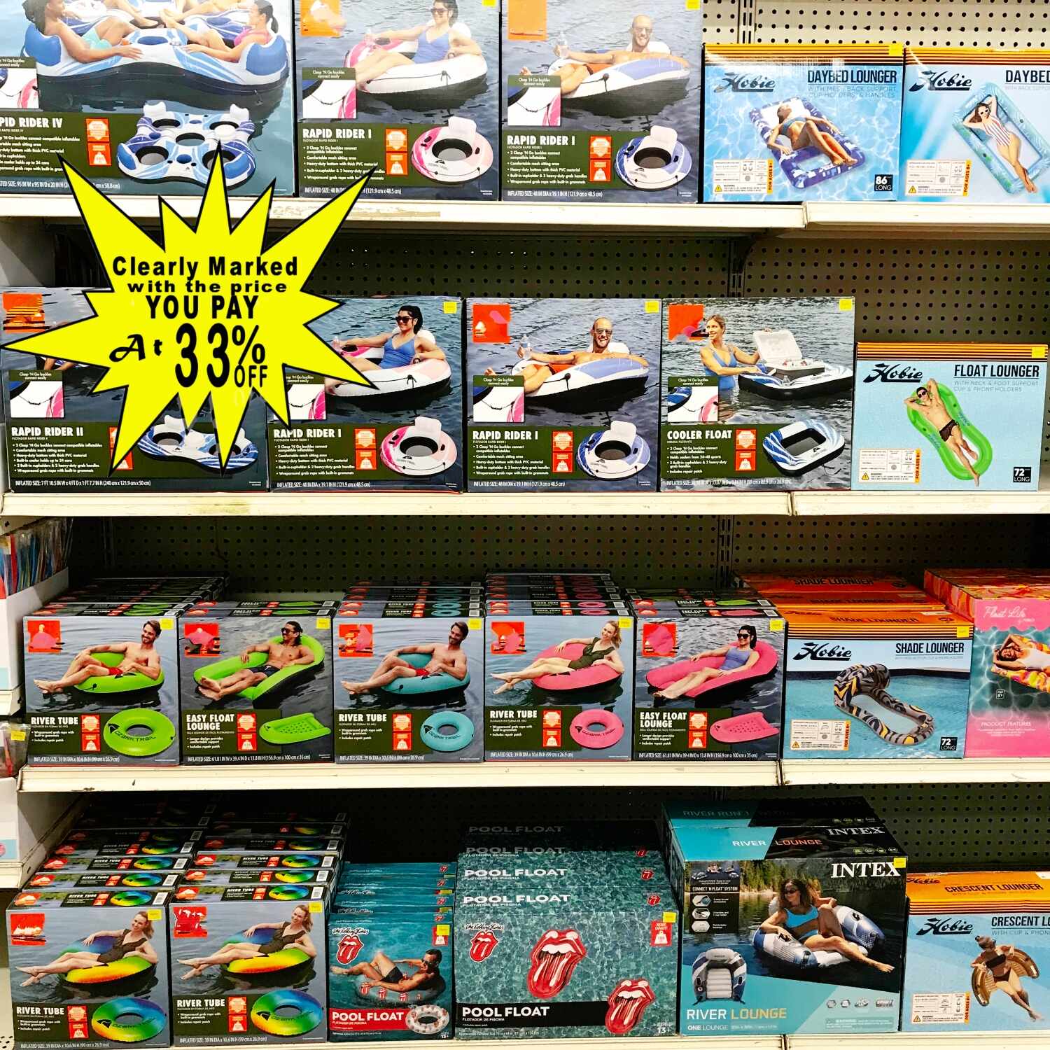 - Floats, loungers, swim rings