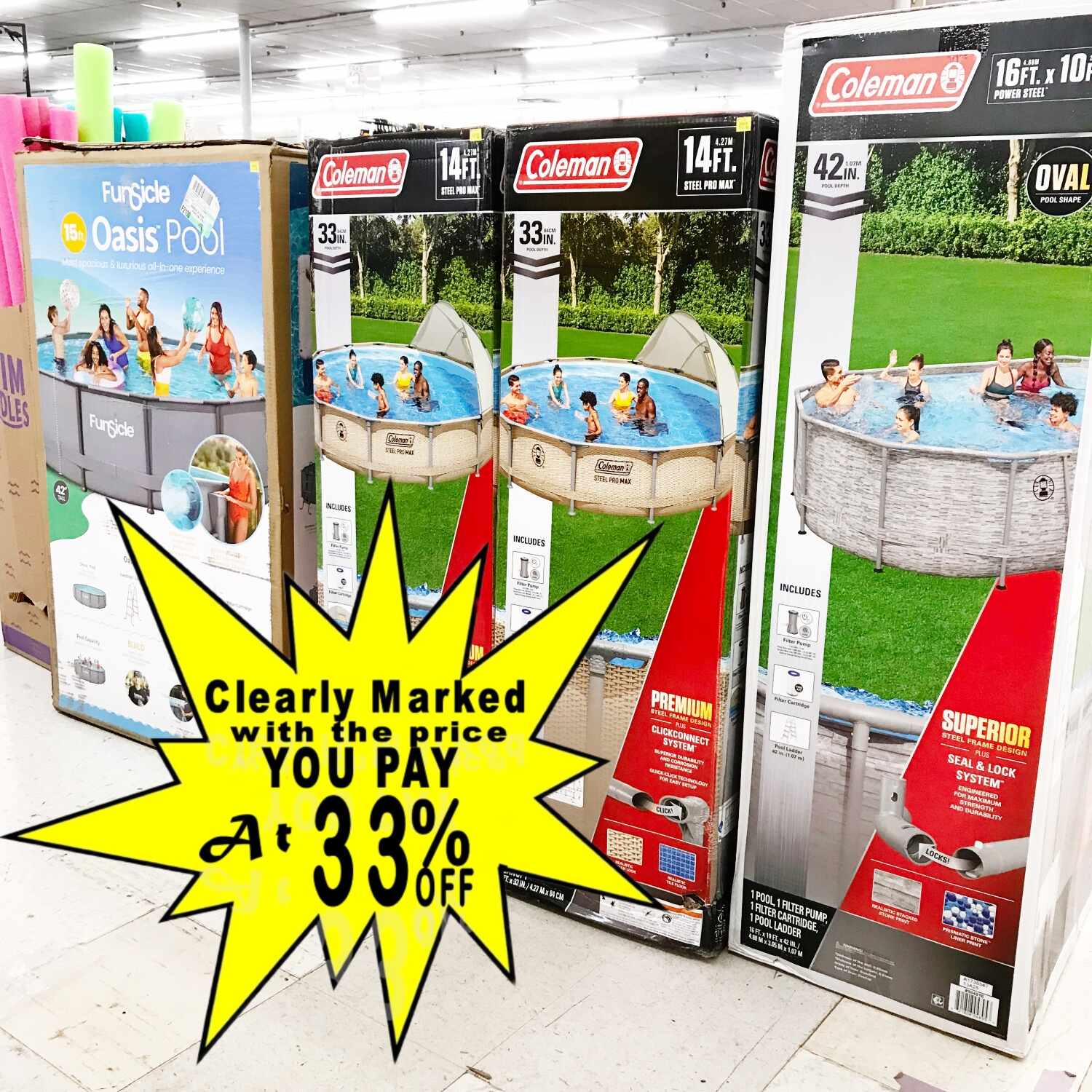 Save up to 33% off the famous discounter’s price on pools, accessories, chemicals, and so much more.